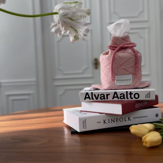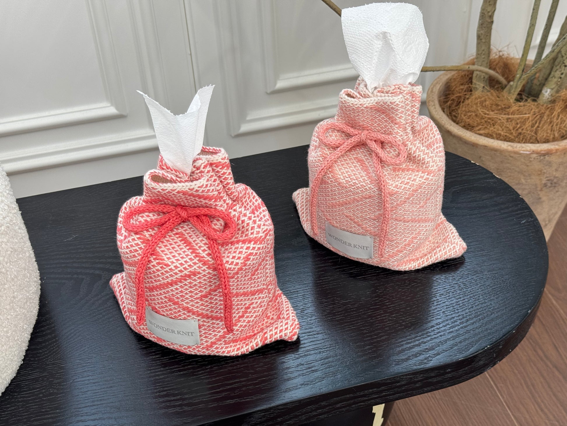 니팅머신으로 위빙패브릭을 직조하여 만든 원형 티슈케이스 니트 커버입니다.